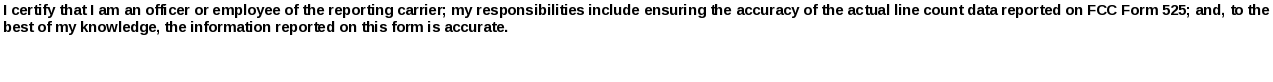 | Certification of Officer or Employee as to the Accuracy of the Data Reported in FCC Form 525, Line Count Report for Competitive Carriers, on Behalf of Reporting Carrier |