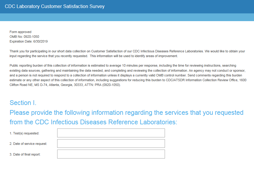 CDC Laboratory Customer Satisfaction Survey (web version