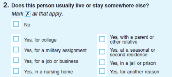 [if so] I’m going to give you another blank Census form and ask you to pretend you are filling it out for that household. First try to think of who within that household would be the one to fill out the form for everyone. Then try to put yourself in their shoes and go through the form, ok?