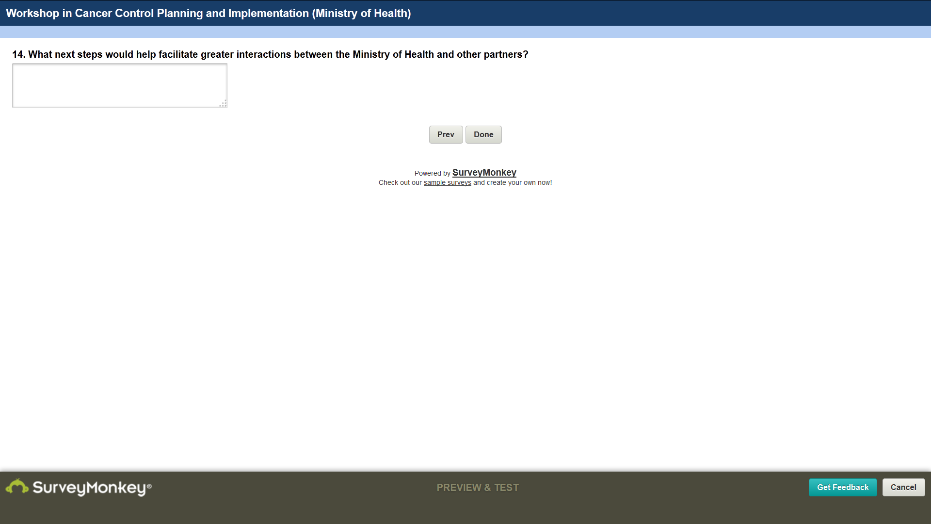 Workshop in Cancer Control Planning and Implementation for Ministry of Health participants Phase 2