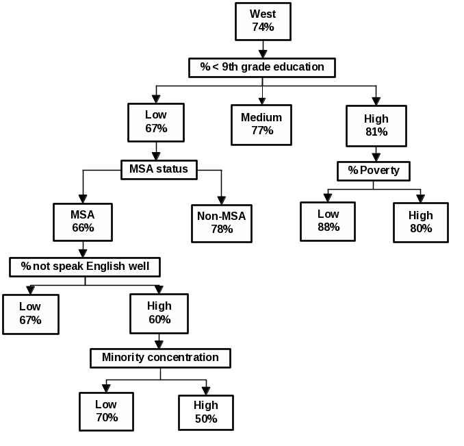 Figure 1 shows an example of a classification tree used for the West region during a U.S. adult competency household survey data collection period.
