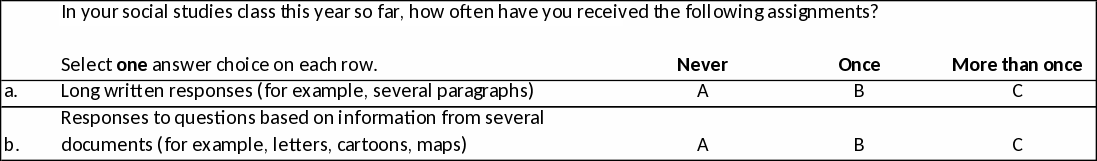 Ask this probe AFTER the participant has answered the entire matrix question on the screen. This probe is specifically for the “stem” of the item, not the entire matrix item or a specific option/sub-item. |