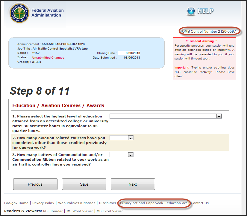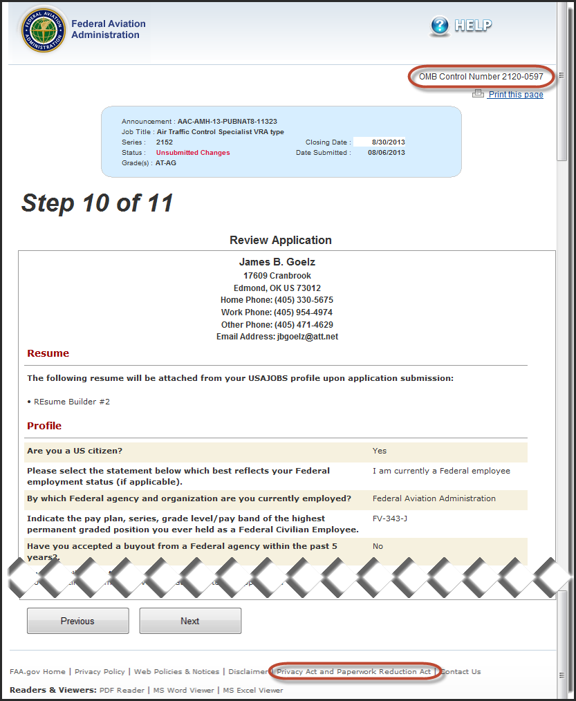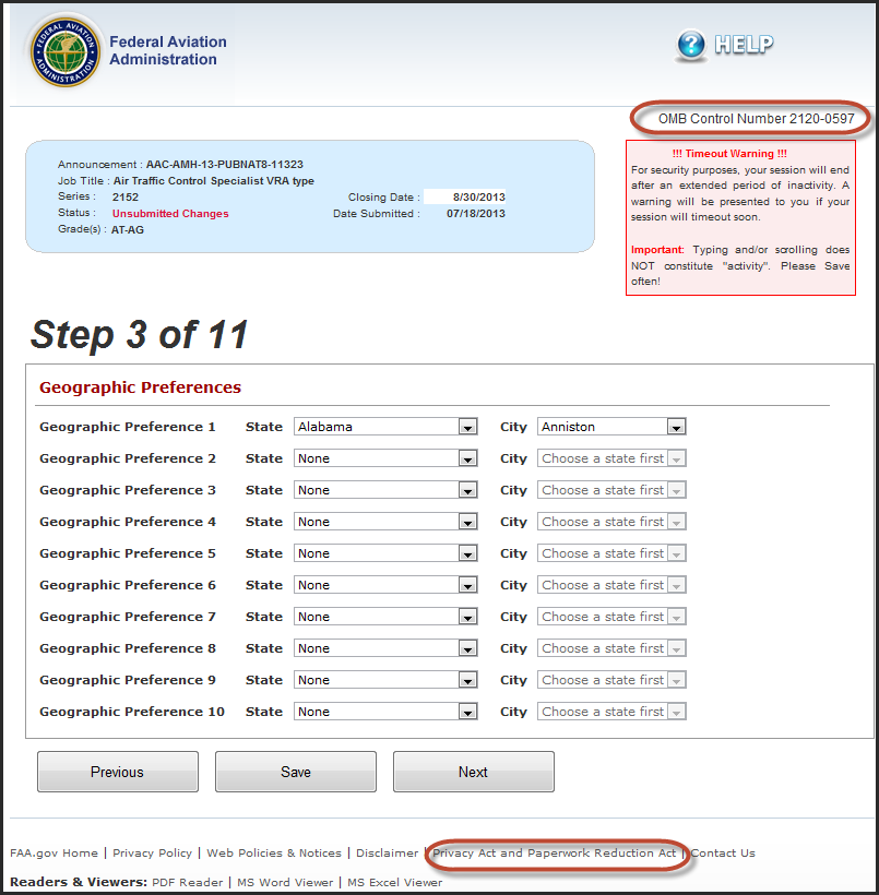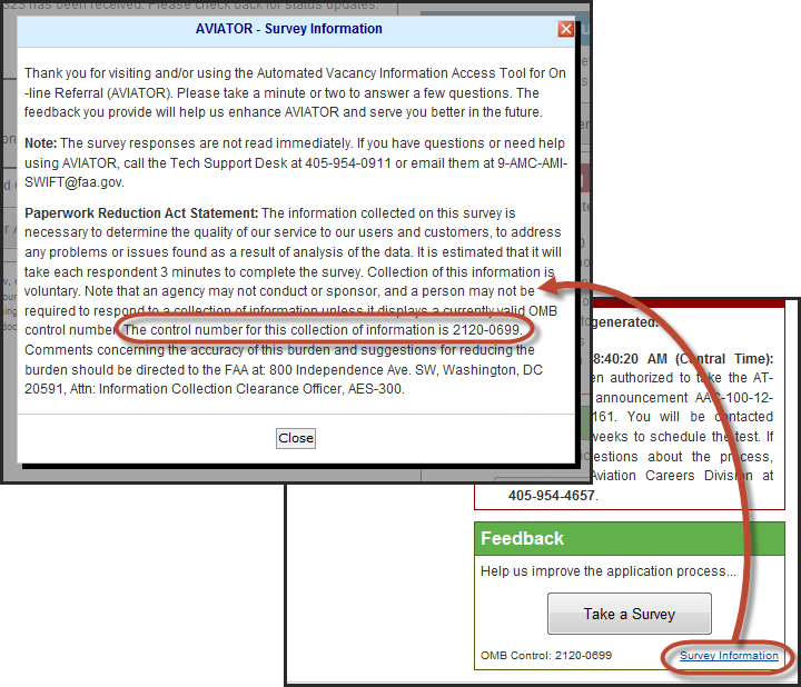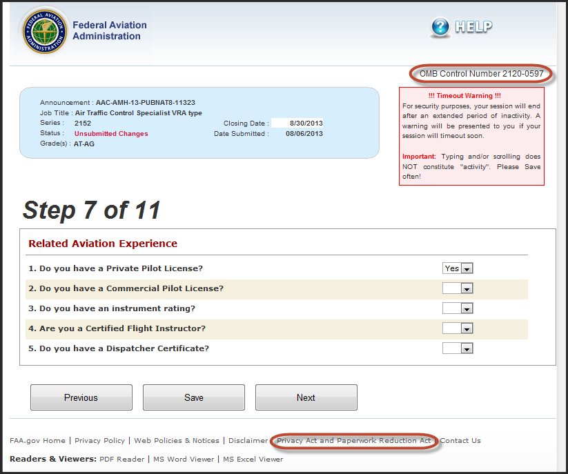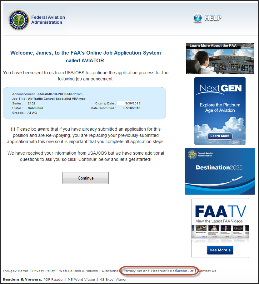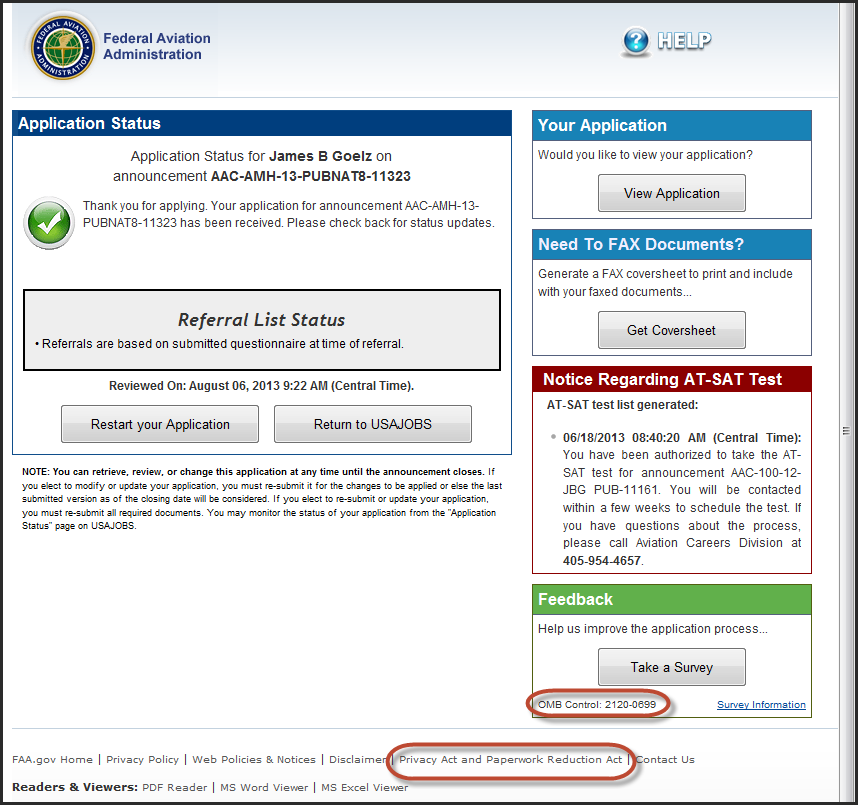AVIATOR – OMB #2120-0597 Screenshots (sample application for a