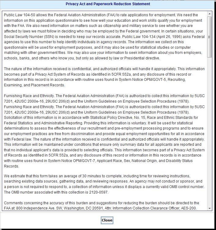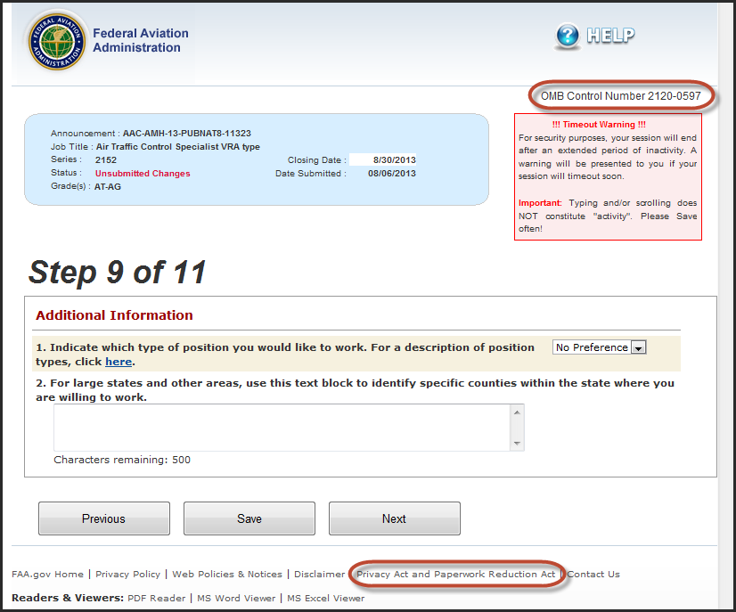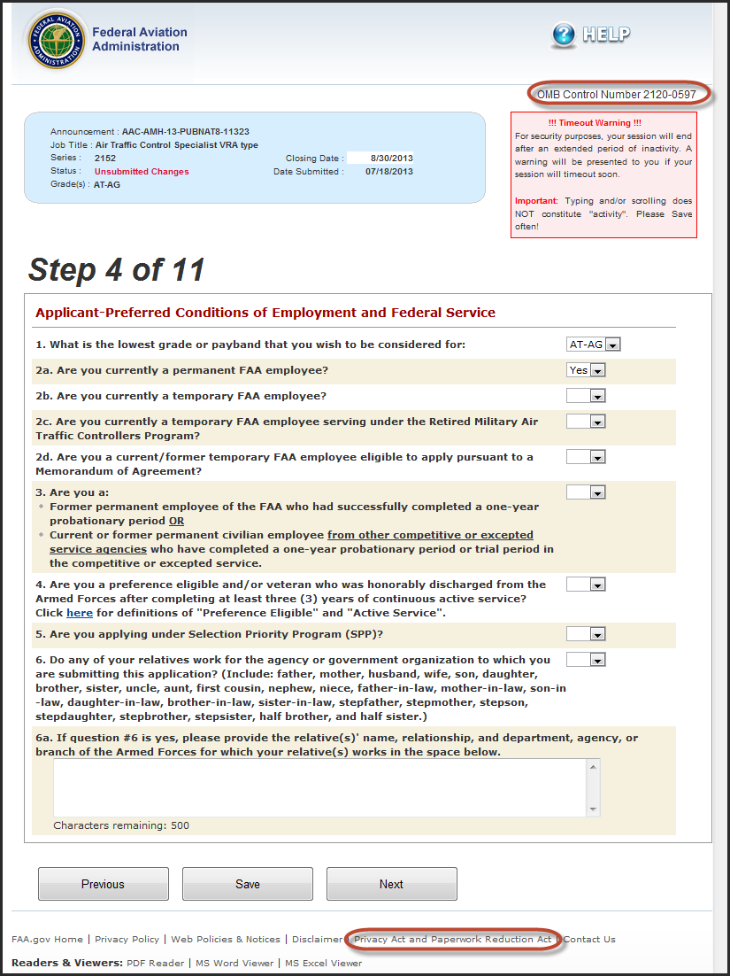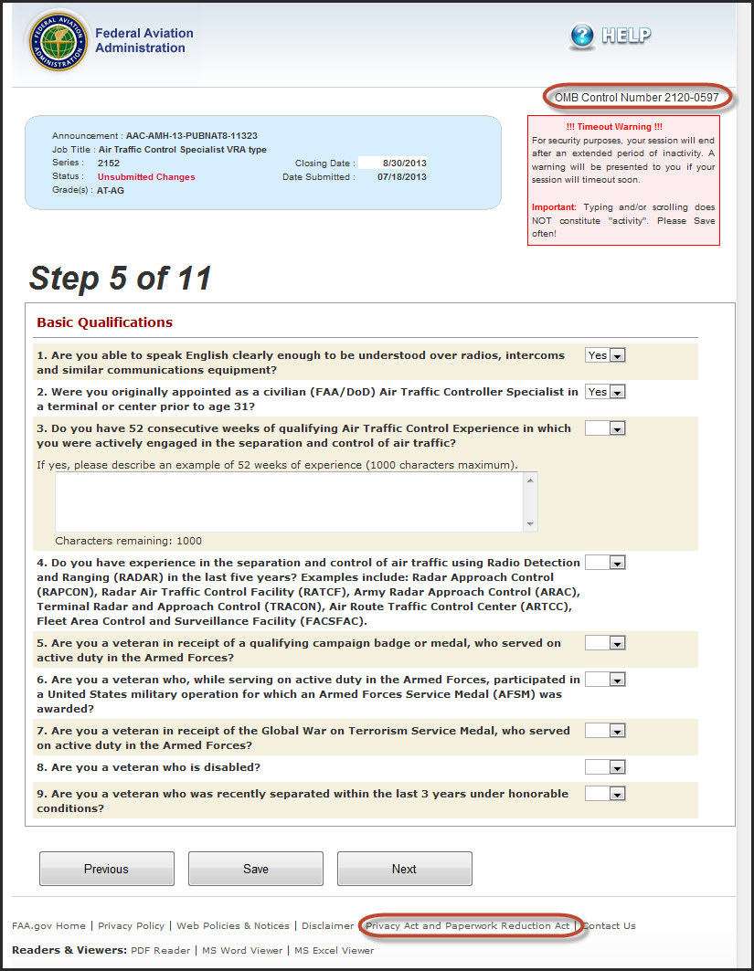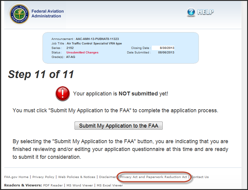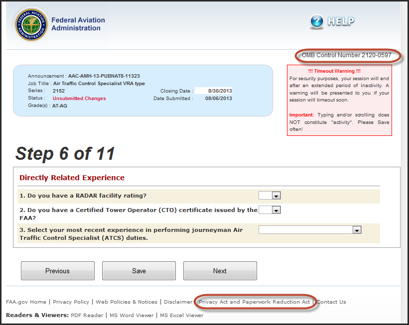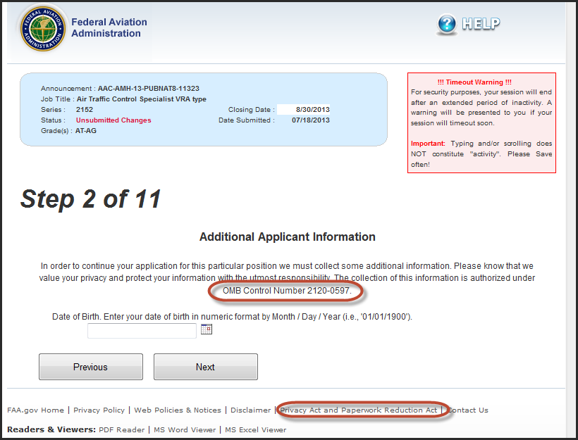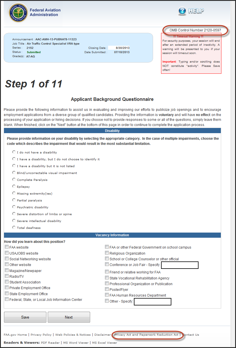 AVIATOR – OMB #2120-0597 Screenshots (sample application for a