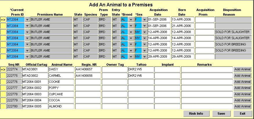 Individual Animal Management--Information obtained from VS Form 5-18, 5-18A and VS Form 5-20 or copies of owner created records