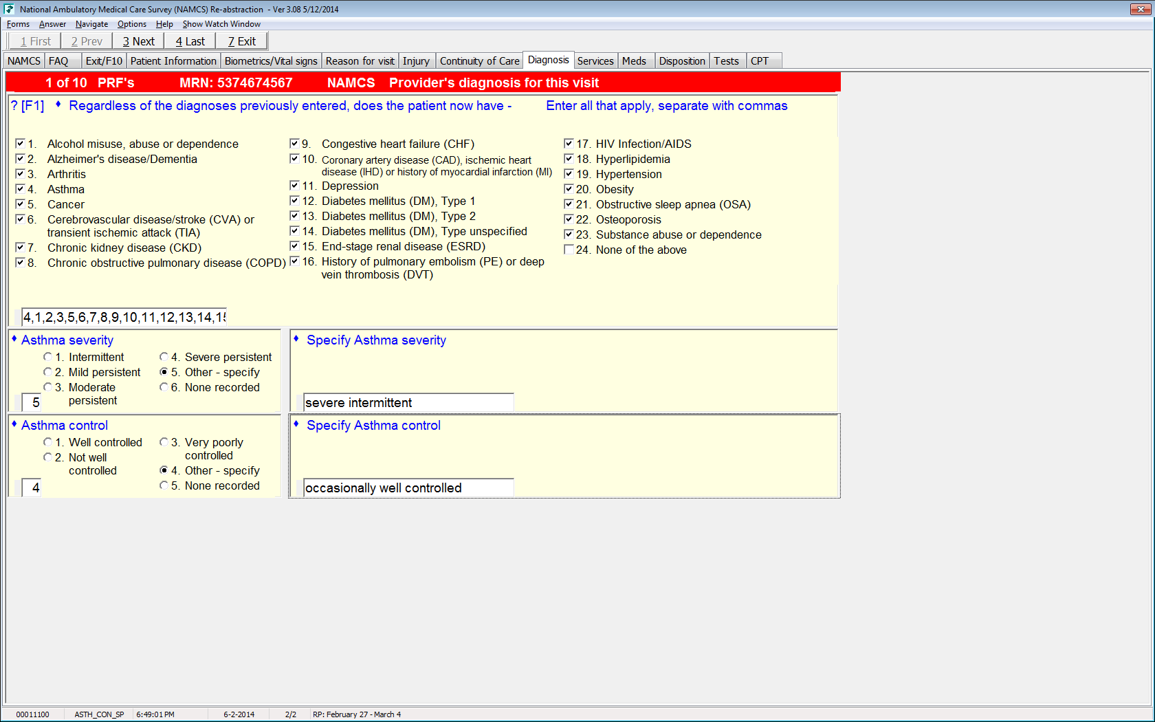 Attachment E: 2015 NAMCS Re-abstraction Study screenshots