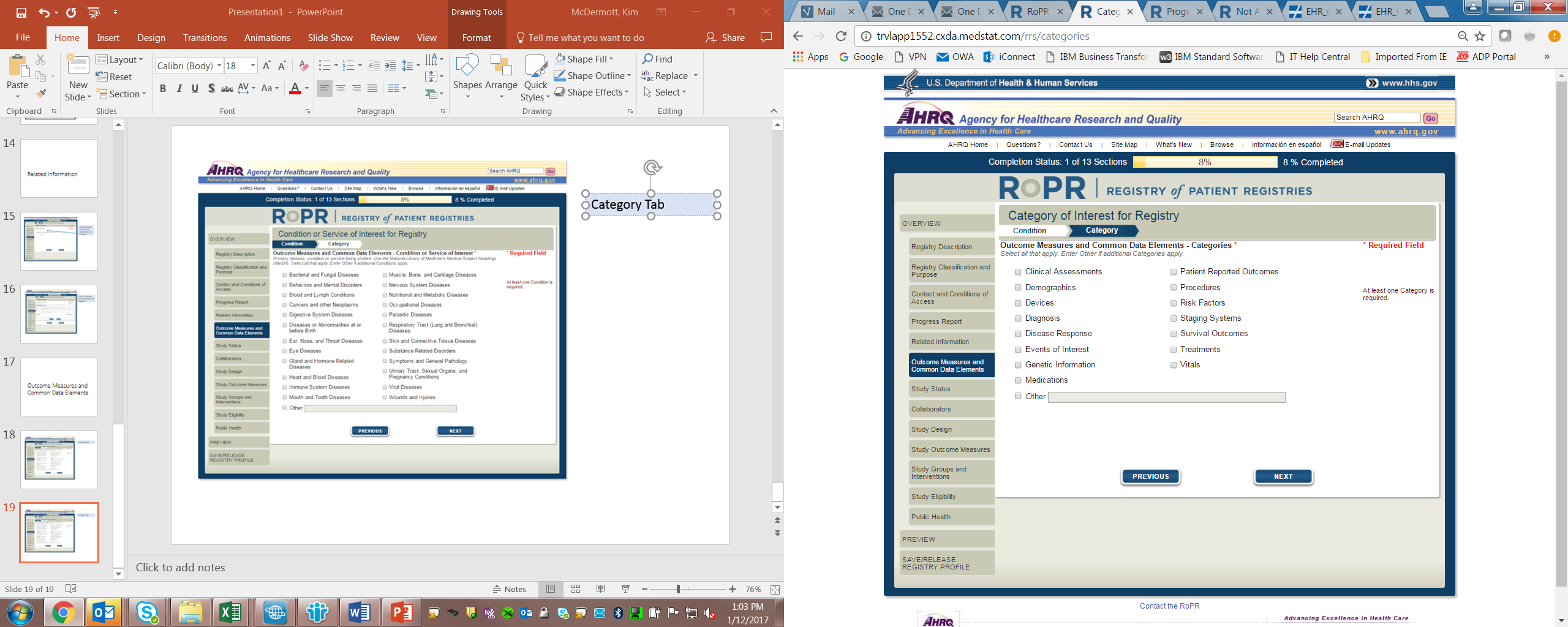 The RoPR data collection system is a web-based collection mechanism. The screenshots included in this document represent all sections that will be visible to users who enter information through the self-registration pathway. The online form has 20 sections.