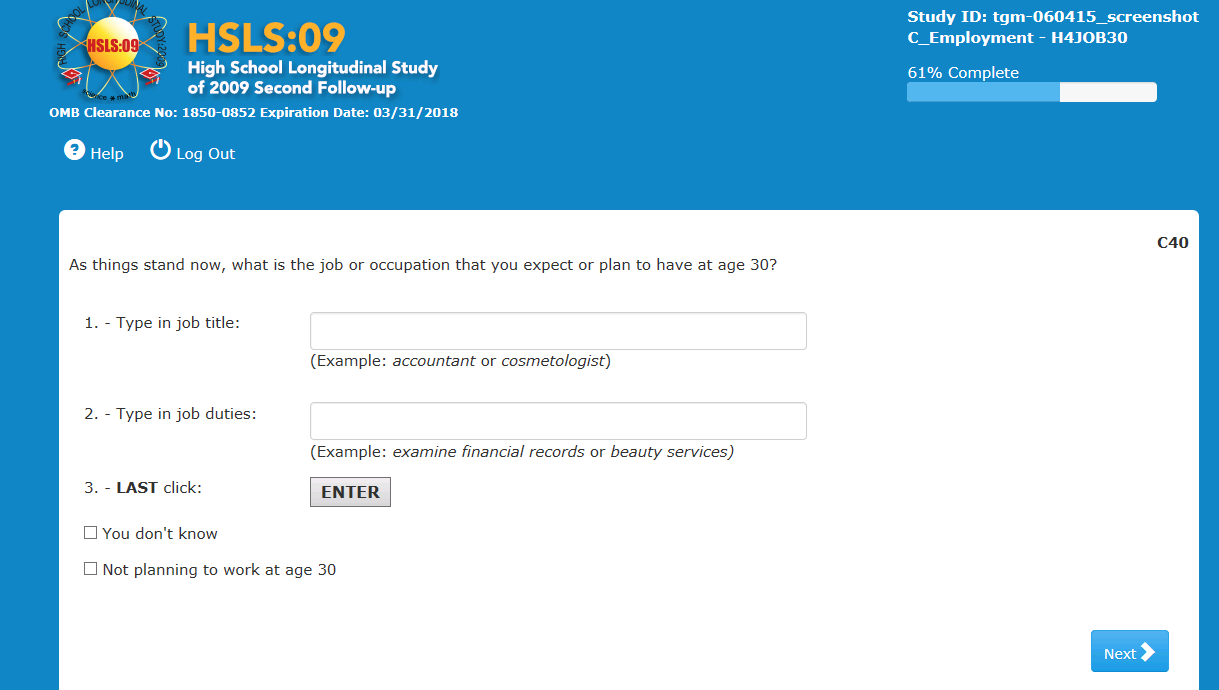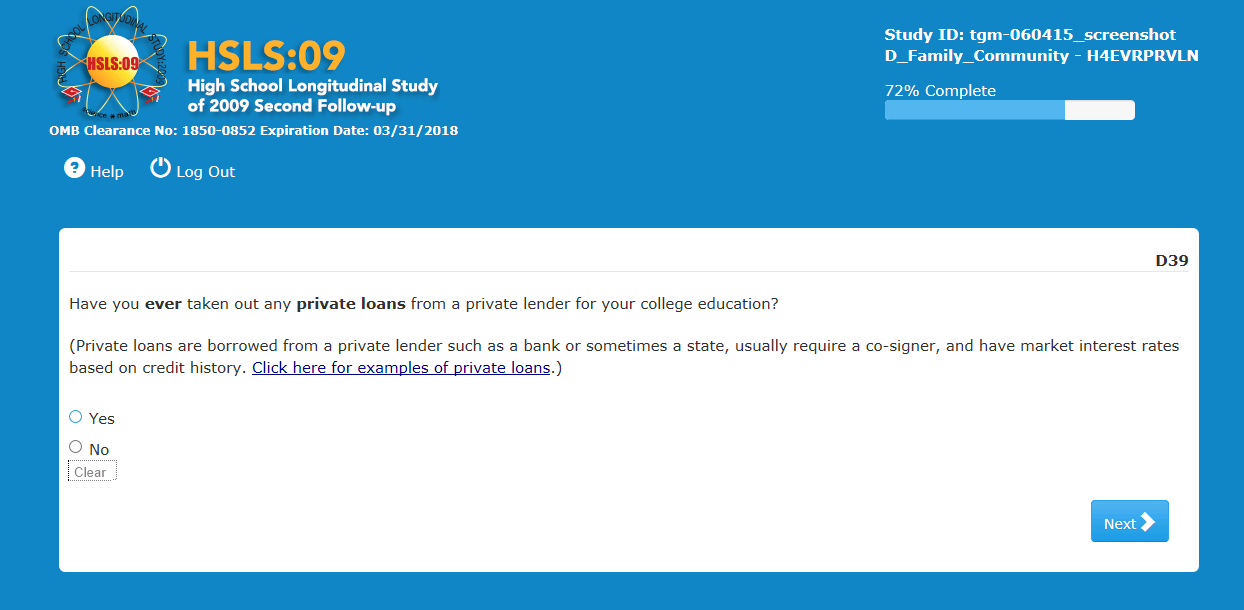Most respondents answering these probes said that they had taken out federal loans, but no private loans. A few were slightly uncertain, in particular those with PLUS loans, but they checked the help text to make sure. One respondent knew virtually nothing about loans, except that they need to be paid back.