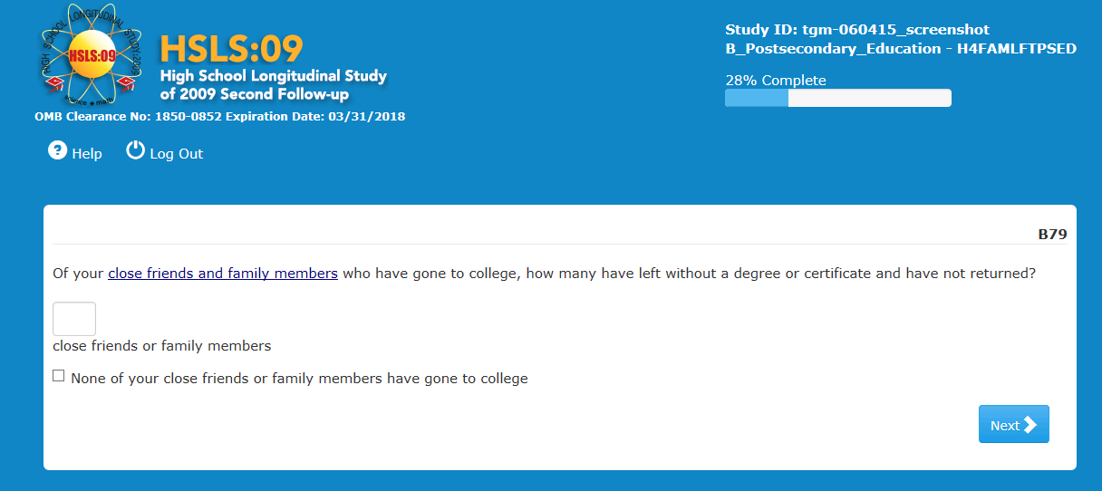 This report summarizes findings of the cognitive testing conducted by Research Support Services Inc. for the High School Longitudinal Study of 2009 (HSLS:09) Second Follow-Up field test survey instrument. Forty cognitive interviews were conducted in Illinois, in the Chicago Standard Metropolitan Statistical Area from June 15, 2015 through July 30, 2015.