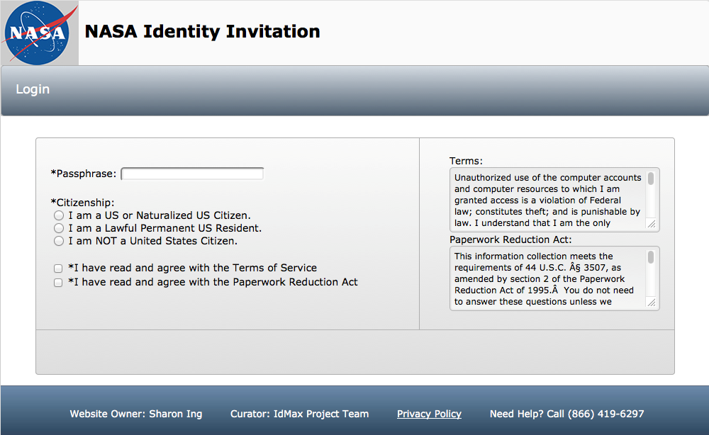 NASA incorporates a privacy policy statement link on every page where members of the public are required to enter information in IdMAX. A copy of the privacy statement is also provided to members of the public when enrolling in-person for a credential.