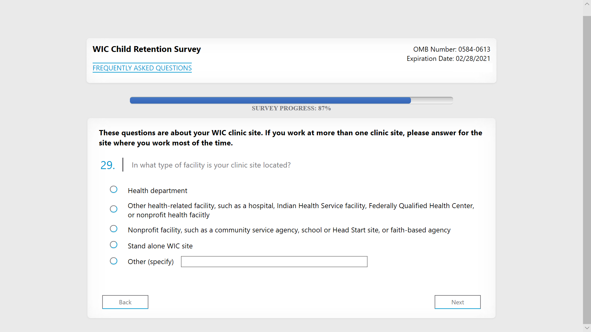 WIC Child Retention Survey – Screenshots of the Web Version
