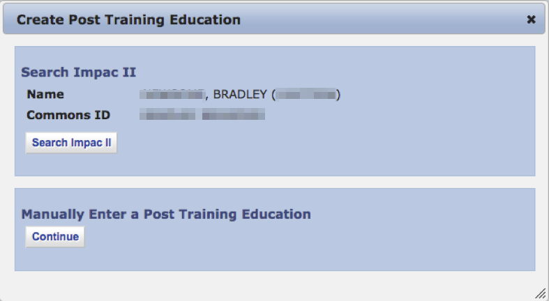 – Post-Training Education (Manually Enter)