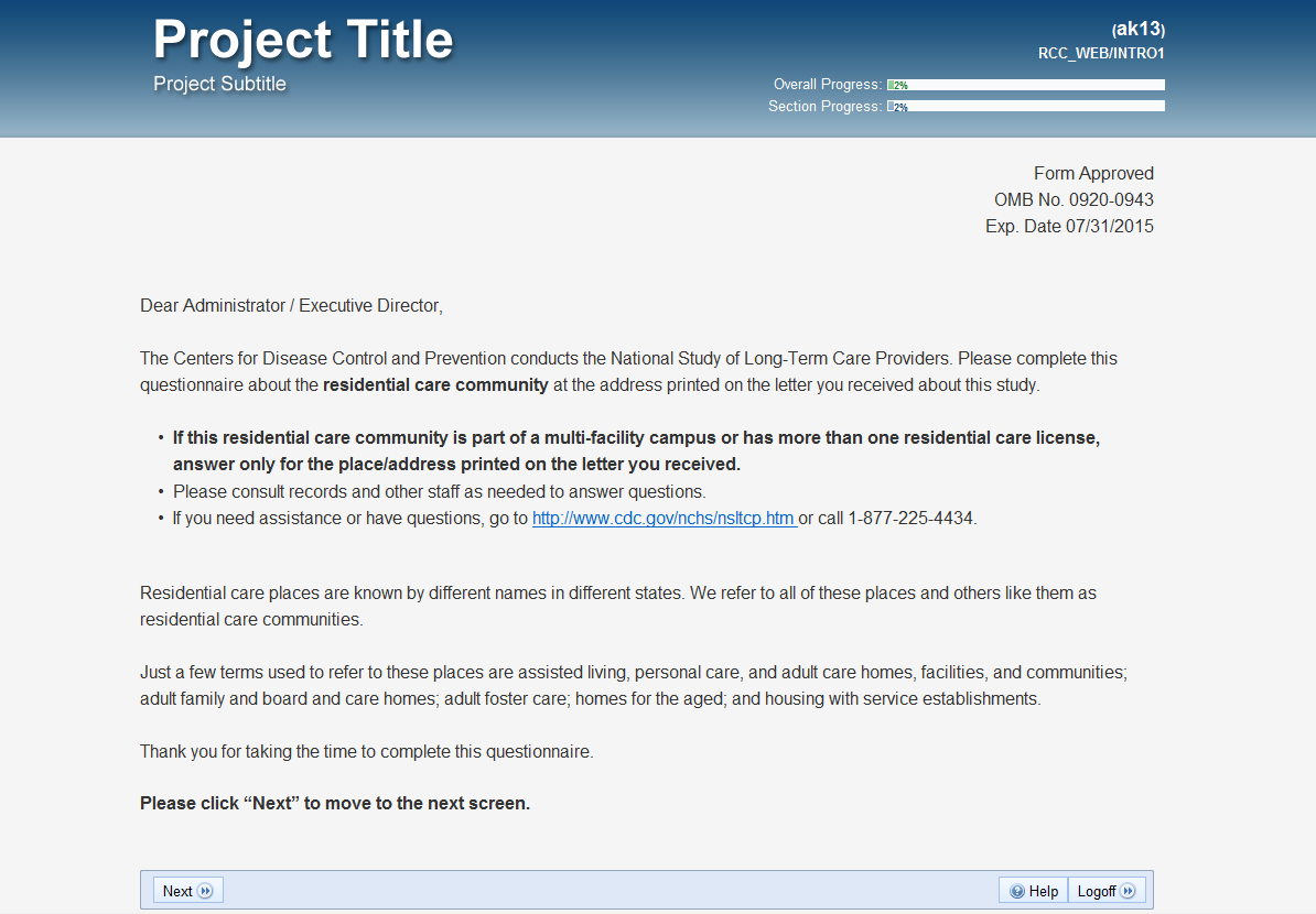 Data Collection for the Residential Care Community and Adult Day Services Center Components of the National Study of Long-term Care Providers