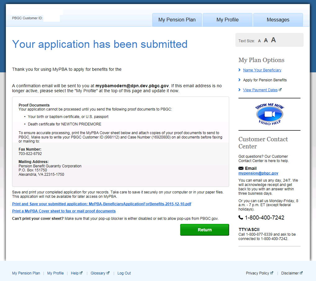 Samples of MyPBA Screens Related to PBGC Forms 12/10/2015 -