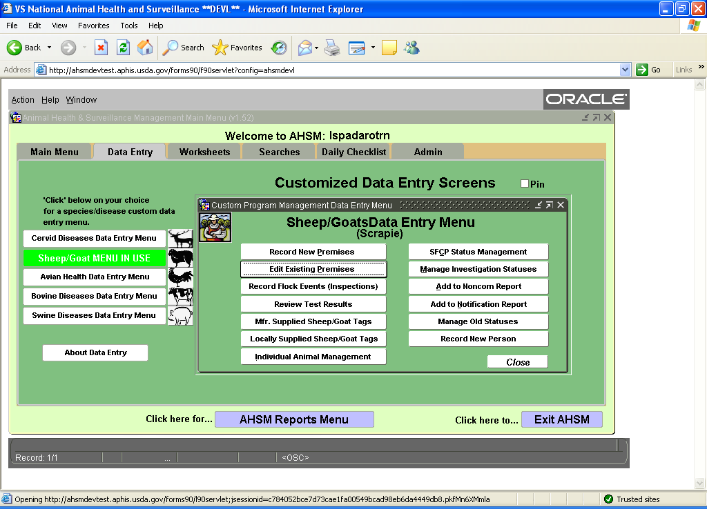 1. VSLS On-farm Surveillance—Information obtained from VS Forms 10-4, 5-29 and 5-29A and entered into this module mirrors that of VSLS Genotyping (see previous screenshot)