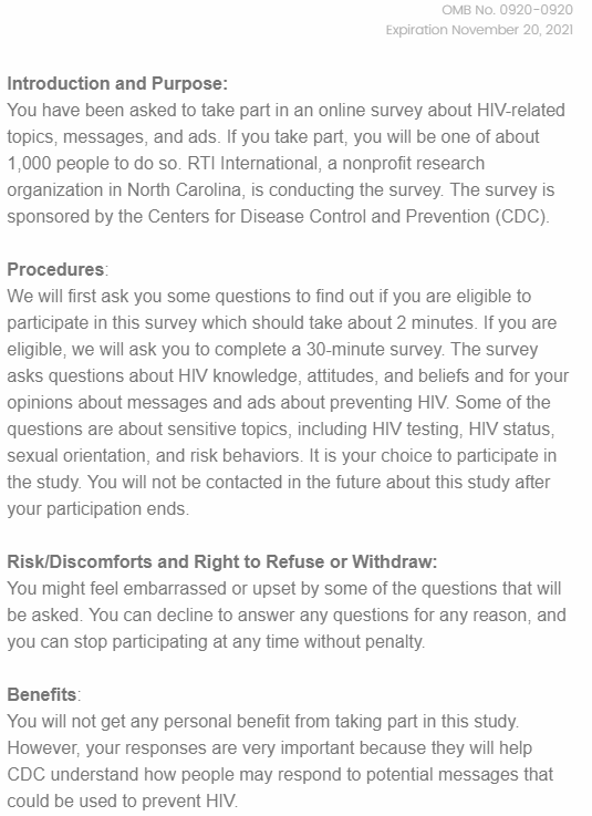 Attachment 4: Screenshots of Web-based Screener and Survey Instrument