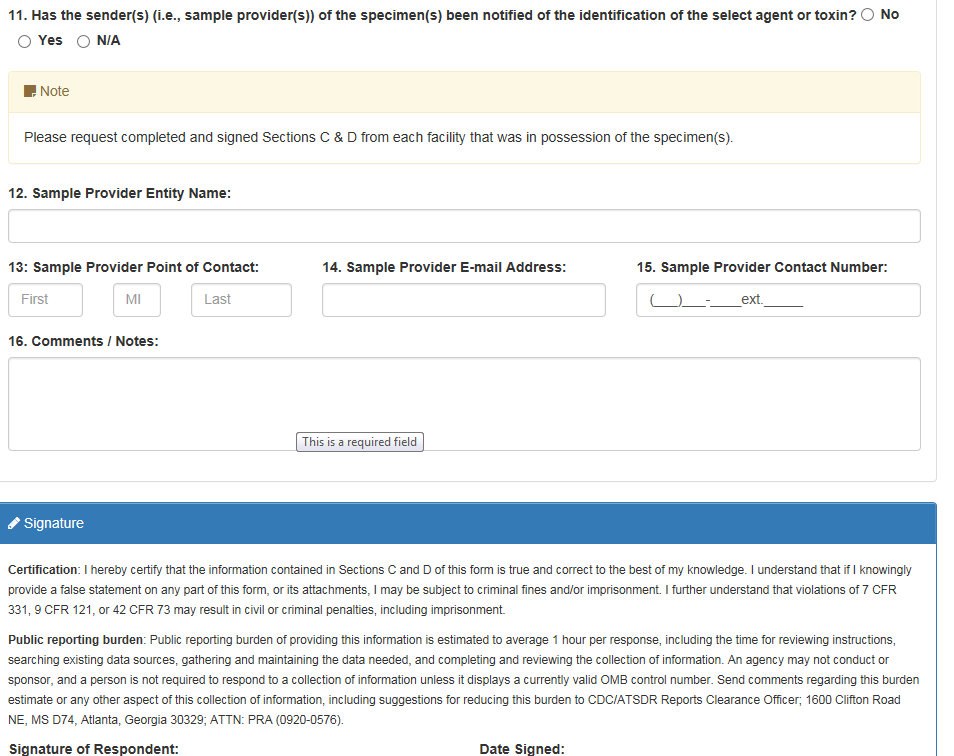 Outside the entity information and select agent identified, data for the APHIS/CDC Form 4 were not collected in NSAR. The pdf of the form was scanned into the system. The below screen prints show what will be collected in eFSAP.