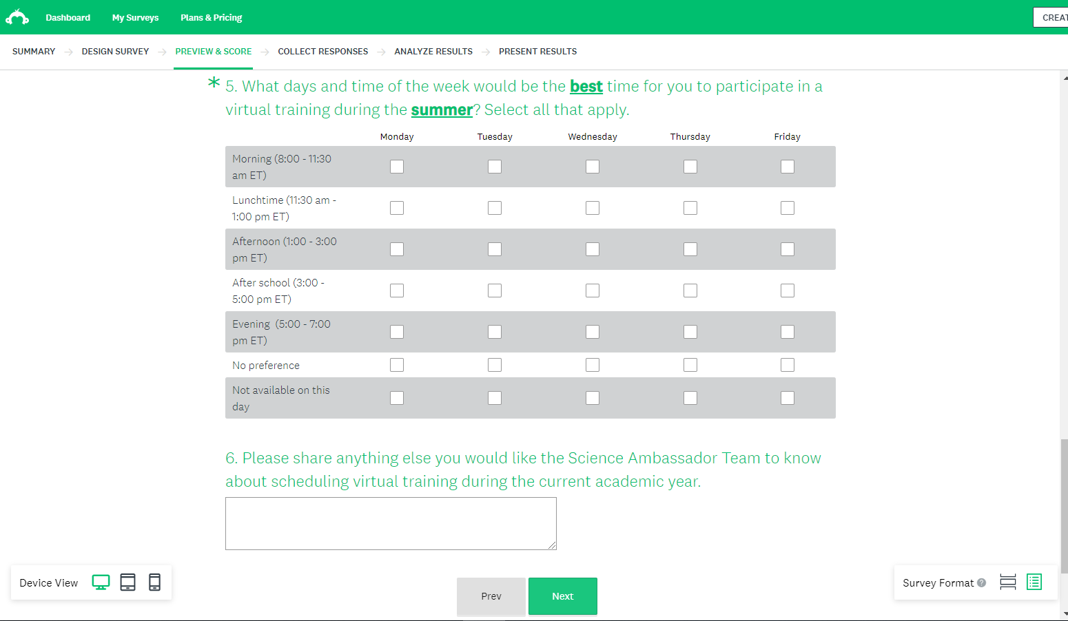 Ambassador Virtual Training Series Availability Survey Screenshots