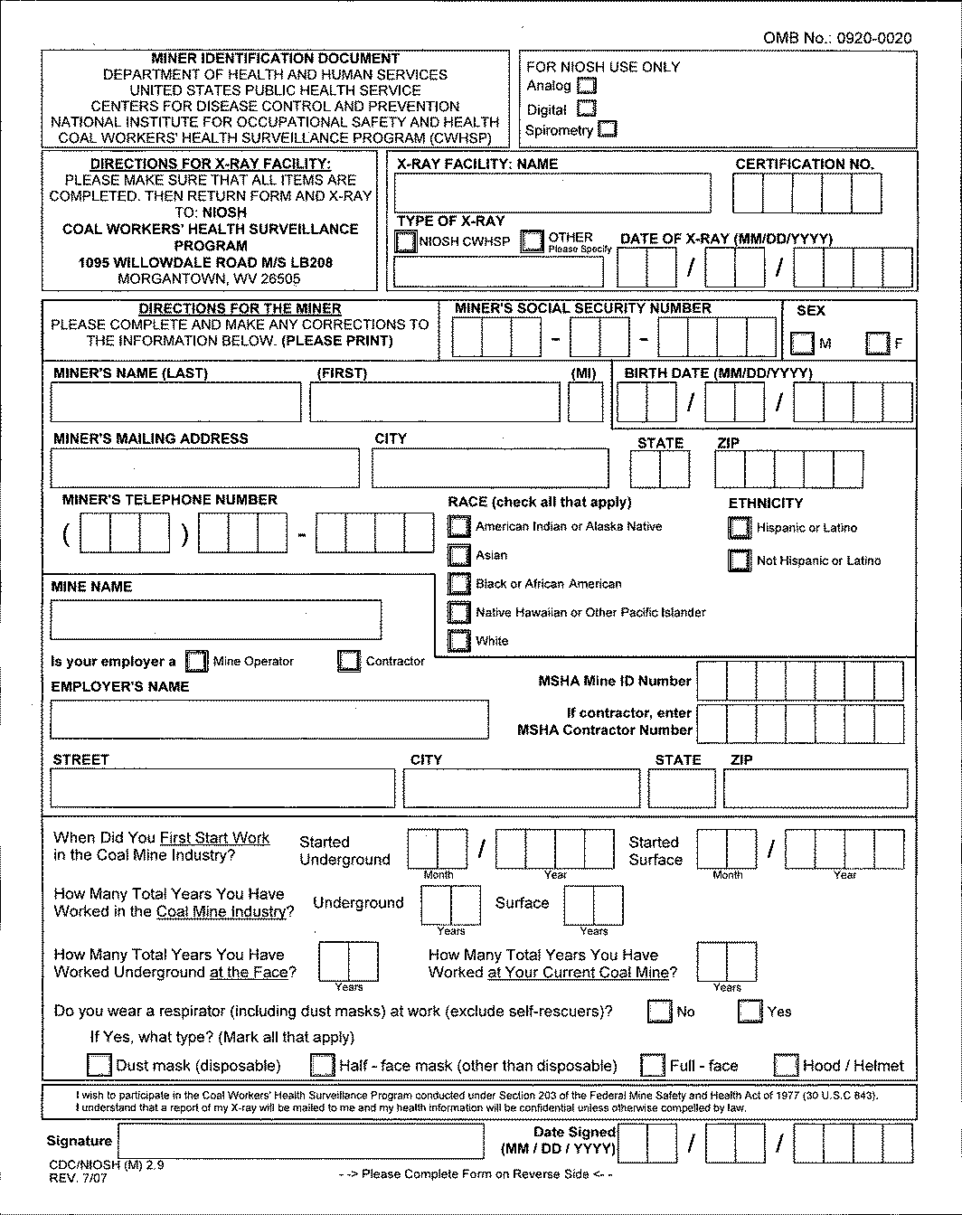 *Send written notification to: NIOSH Coal Workers’ Health Surveillance Program, 1095 Willowdale Road, M/S LB208, Morgantown, WV 26505