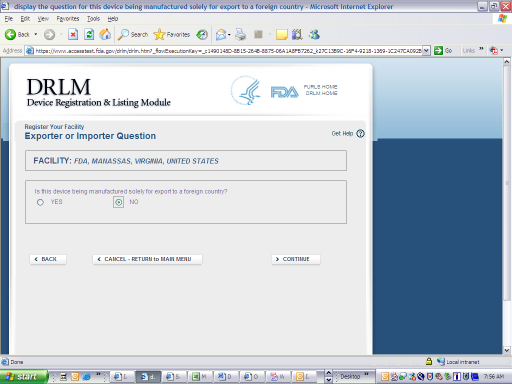Form FDA 3673 Screen shots