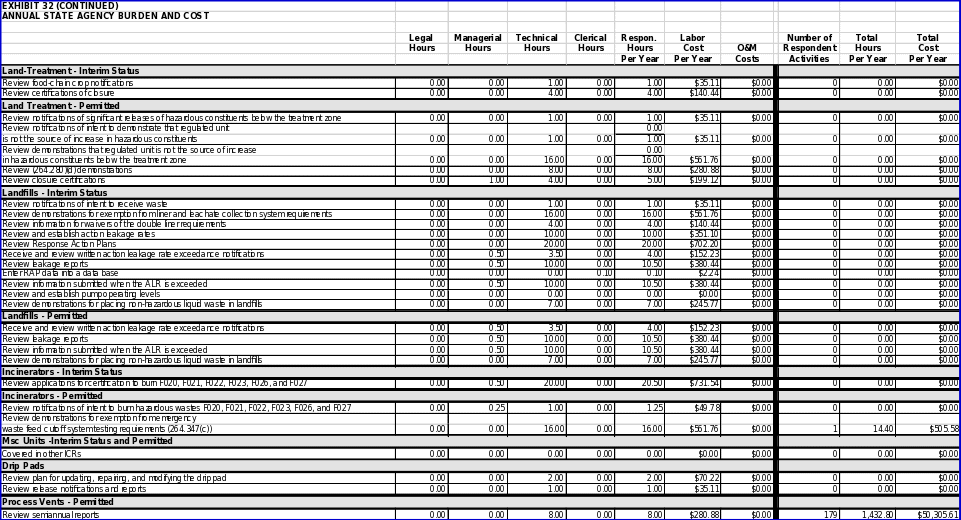 EPA estimates an average hourly State agency labor cost (including overhead) of $62.51 for legal staff, $58.68 for managerial staff, $35.11 for technical staff, and $22.40 for clerical staff. These wage rates are based on the rates from last renewal, multiplied by an inflation rate of 3.4% to bring them up to 2019 rates. The burden hours presented in Exhibit 32 are used to estimate the State agency costs associated with all of the information collection activities covered in this ICR.