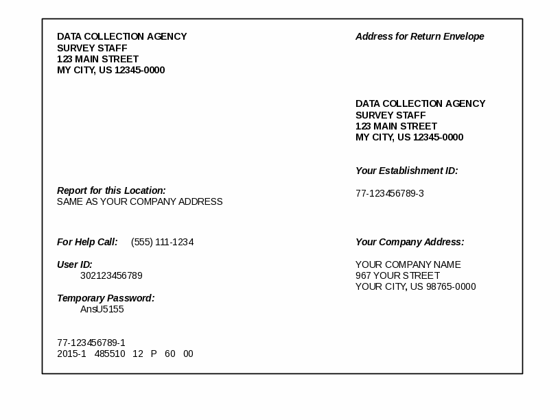 Use el sobre pre-dirigido para enviarnos el formulario completo- todo lo que nosotros le enviamos-dentro de los próximos 30 días después que su establecimiento lo haya recibido. Si el sobre pre-dirigido no está incluido, envíe todo el formulario a la dirección que aparece en la portada.