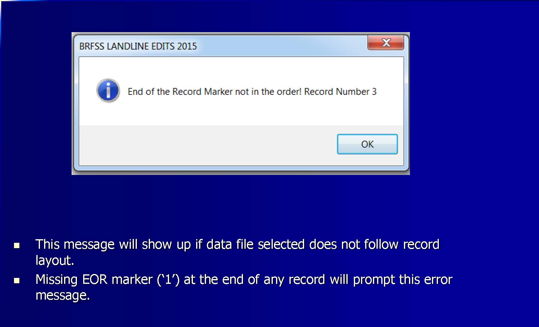 Appendix D: Uploading BRFSS Data Using OneEdits 49