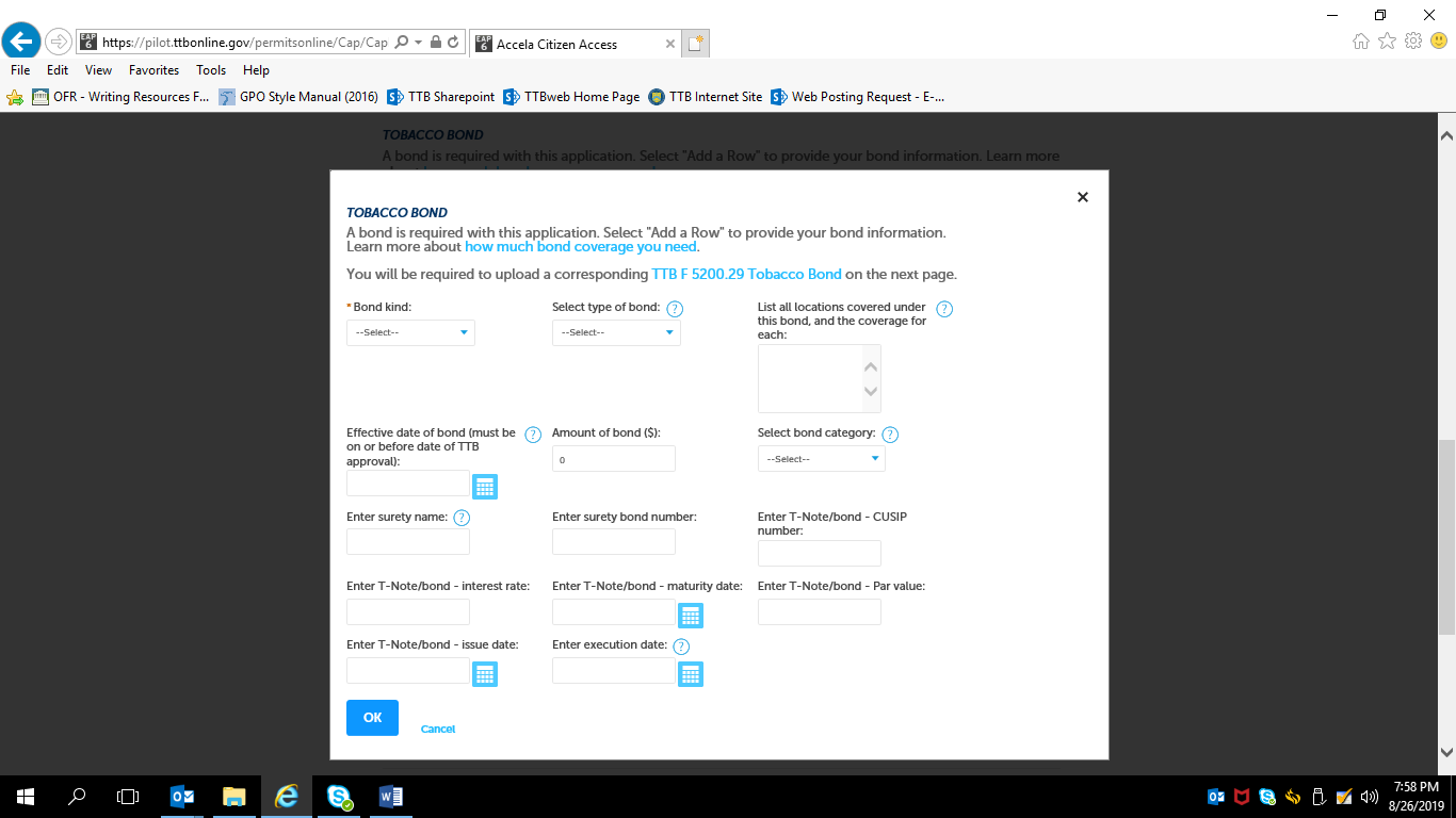 NOTE: Tobacco Bond information collection approved under OMB No. 1513–0103; Consent of Surety information collection approved under