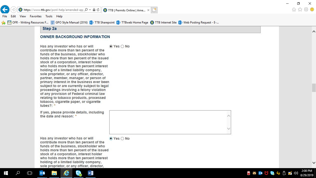Amended Manufacturer of Processed Tobacco or Tobacco Products, or New Tobacco Export Warehouse, Permit Applications