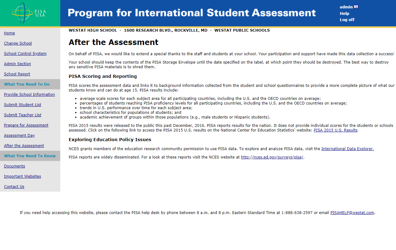 You can contact Help Desk at PISAHELP@westat.com.