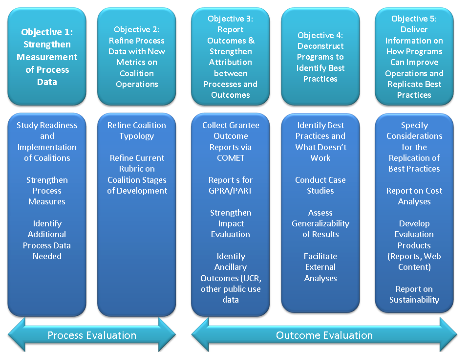 The upshot of these evaluation activities will be a stronger evidence base, along with more practical information for coalitions. Ultimately, we feel that this approach dovetails well with the needs of the grantees, as well as the mission of ONDCP and SAMHSA.