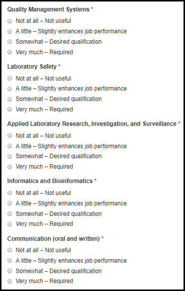 Demonstrate capabilities needed for the testing of samples across a spectrum of technical activities in public health laboratories. |