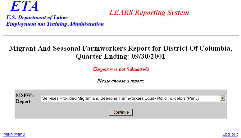 Figure 3: LEARS Reporting System Main Menu
