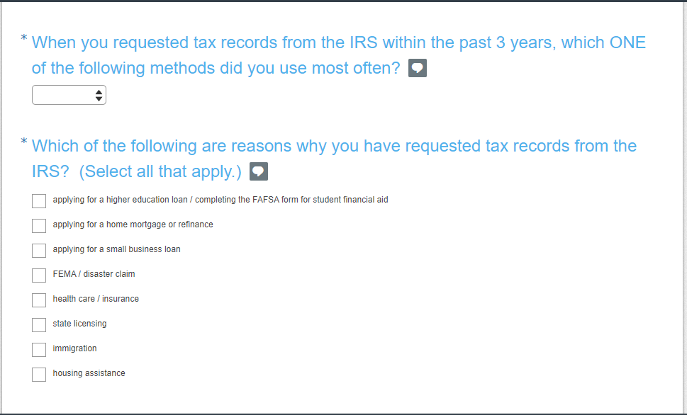 If the IRS could provide to you 5 or 6 of these items, would that provide to you enough information? Or would you still need to request your tax record?