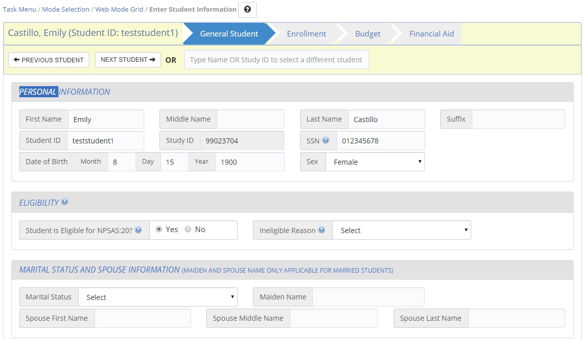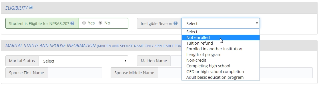Para obtener más orientación y ver ejemplos, consulte el Manual de registros de estudiantes de NPSAS:20, disponible en la página Resources del PDP. Puede informar hasta 3 subvenciones de ayuda por estudiante en esta sección. Para dirección sobre como reportar ayuda económica para estudiantes impactados por COVID-19, por favor vea el Libro de códigos para registros de estudiantes en la página de Recursos del PDP o contacta la Línea de Ayuda. |