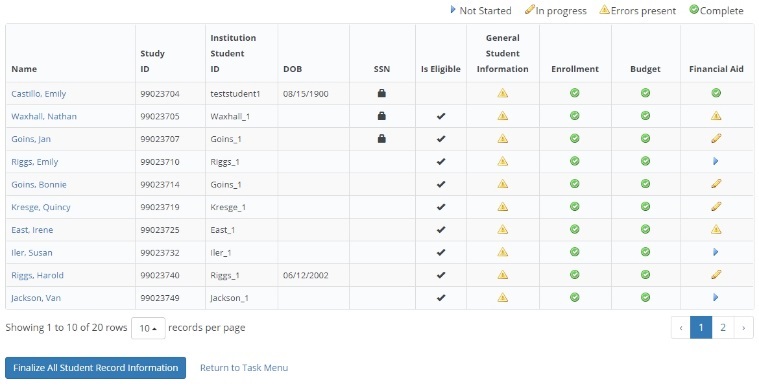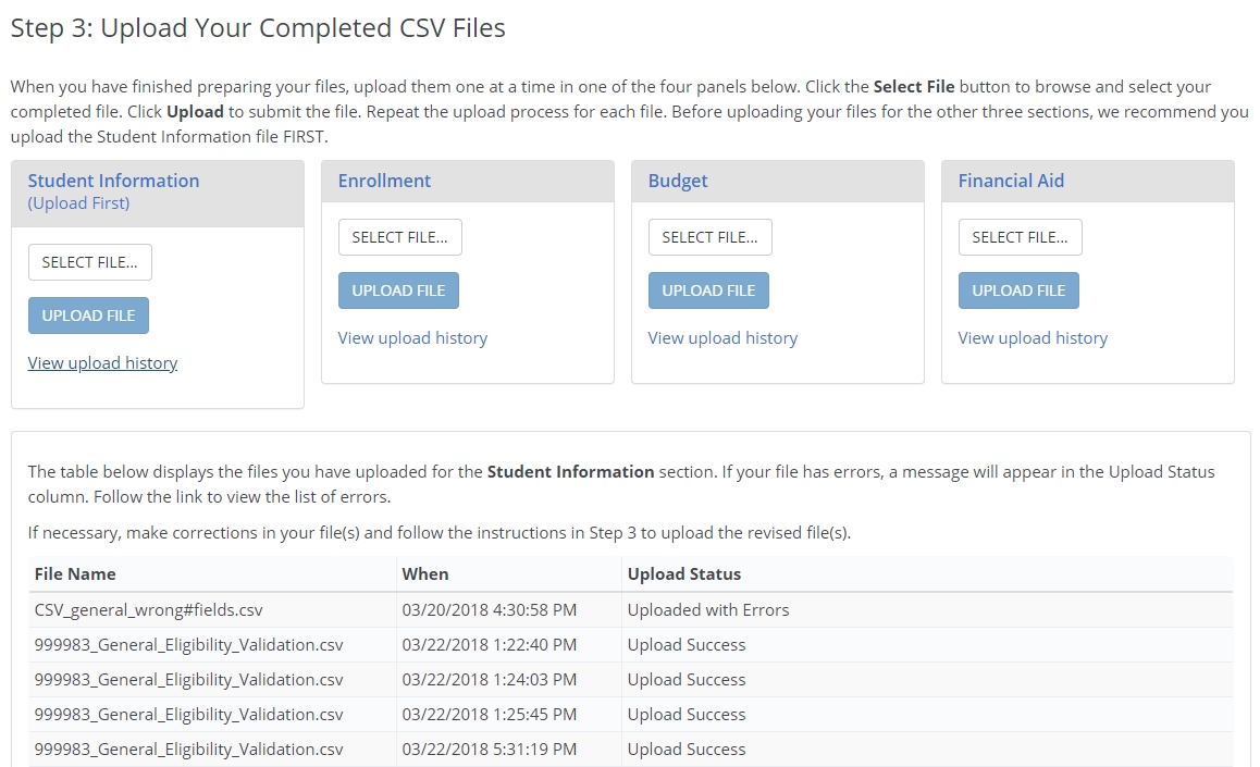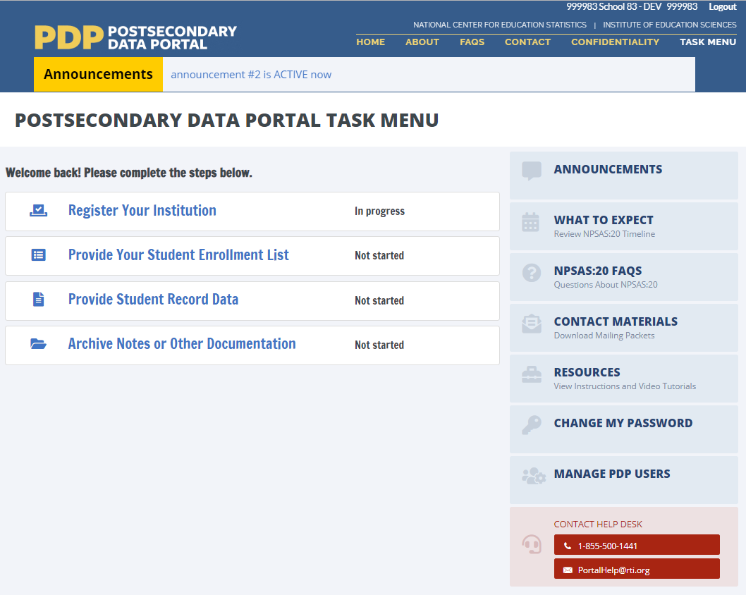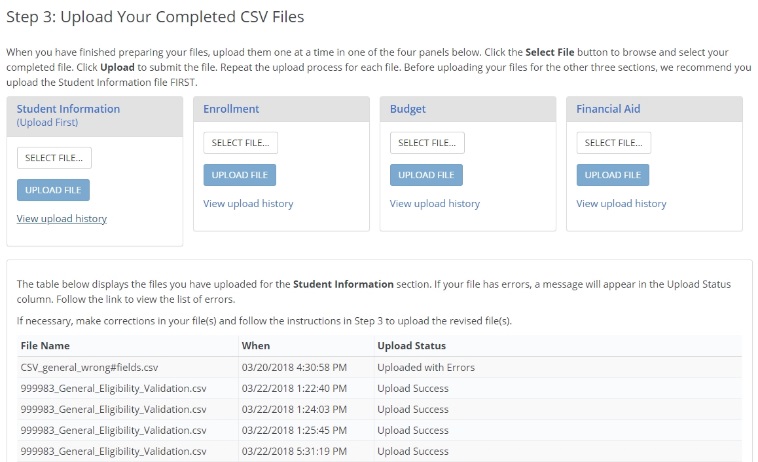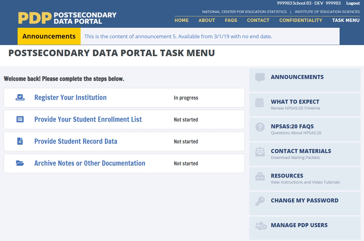 The instructions and website text included in this appendix are based on those submitted for NPSAS:18-AC and assume that each institution will create their own student enrollment list files using the instructions and file specifications included in this appendix. NCES is currently exploring options to provide institutions with templates, programs for statistical software, or additional tools that will reduce the burden associated with gathering and formatting the data for the student enrollment list. If one of these approaches proves feasible, the materials below will be updated to give institutions the option of creating their own enrollment list file using the specifications or downloading the template or program provided to them on NCES’ Postsecondary Data Portal (PDP) website.