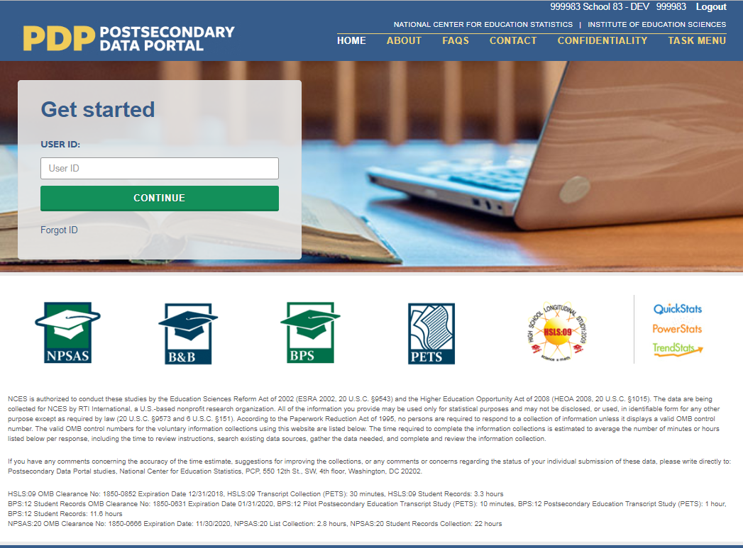 According to the Paperwork Reduction Act of 1995, no persons are required to respond to a collection of information unless it displays a valid OMB control number. The valid OMB control number for this voluntary information collection is 1850-0666. The time required to complete this information collection is estimated to average the number of minutes or hours listed below per response, including the time to review instructions, search existing data sources, gather the data needed, and complete and review the information collection. If you have any comments concerning the accuracy of the time estimate, suggestions for improving this information collection, or any comments or concerns regarding the status of your individual submission of these data, please write directly to: Postsecondary Data Portal studies, National Center for Education Statistics, PCP, 550 12th St., SW, Room 4007, Washington, DC 20202.