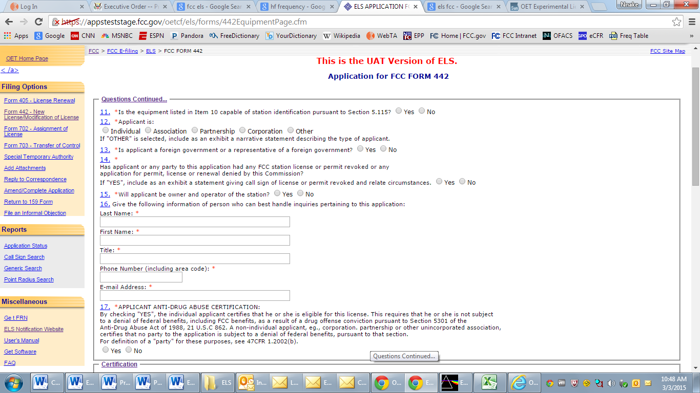 Application for New or Modified Radio Station Authorization Under Part 5 of FCC Rules - Experimental Radio Service (Other than Broadcast)