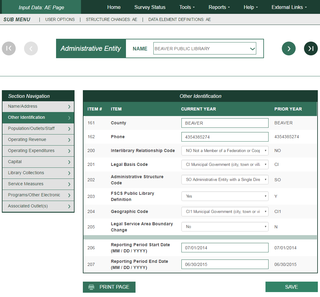 The administrative entity (AE) is the legally established agency that provides library services to the population of a local jurisdiction. An AE must operate one or more direct public library service outlets. The AE’s offices may be located in one of the outlets (e.g., a single-outlet central library or a branch of a decentralized multi-outlet operation) or in separate quarters (e.g., an office adjacent to an independent bookmobile’s garage). The data reported for each AE are the combined data for all of its outlets. (See Appendix A to review the AE data elements included on the PLS.)