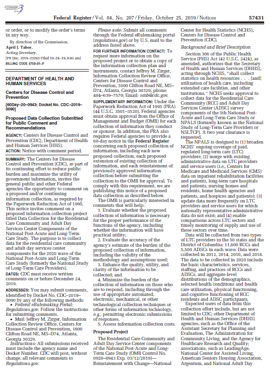Data Collection for the Residential Care Community and Adult Day Services Center Components of the National Study of Long-term Care Providers