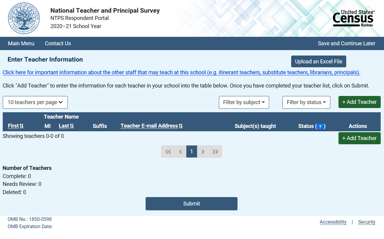 NTPS Online Screener and Respondent Portal Website Including Teacher Listing Form (TLF)