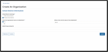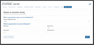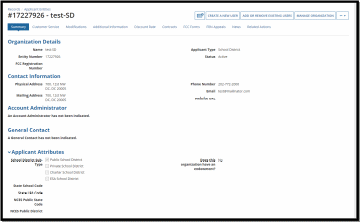 After the organization is created, the school district can manage its relationships with other organizations such as adding new child entities.