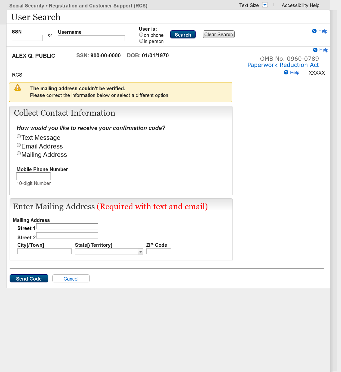 21. Search Results with No Active Account, In-Person SSN with Active Code 16