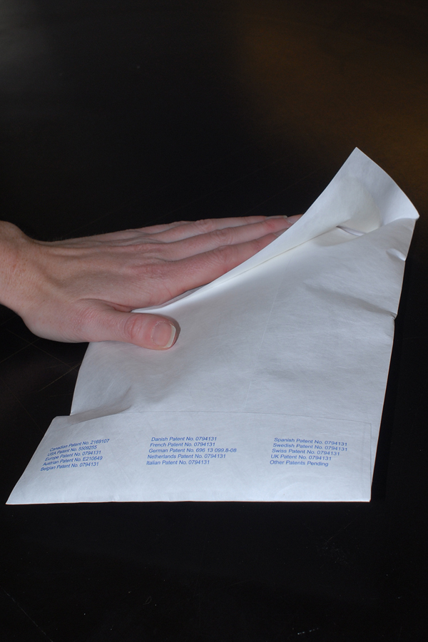 contains the absorbent material. Peel off liner and seal by pressing