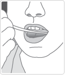 1. Place and move sponge in cheek pouch along the gums and inner cheeks, soaking up as much saliva as possible for 30 seconds. Use the same sponge to collect additional saliva.