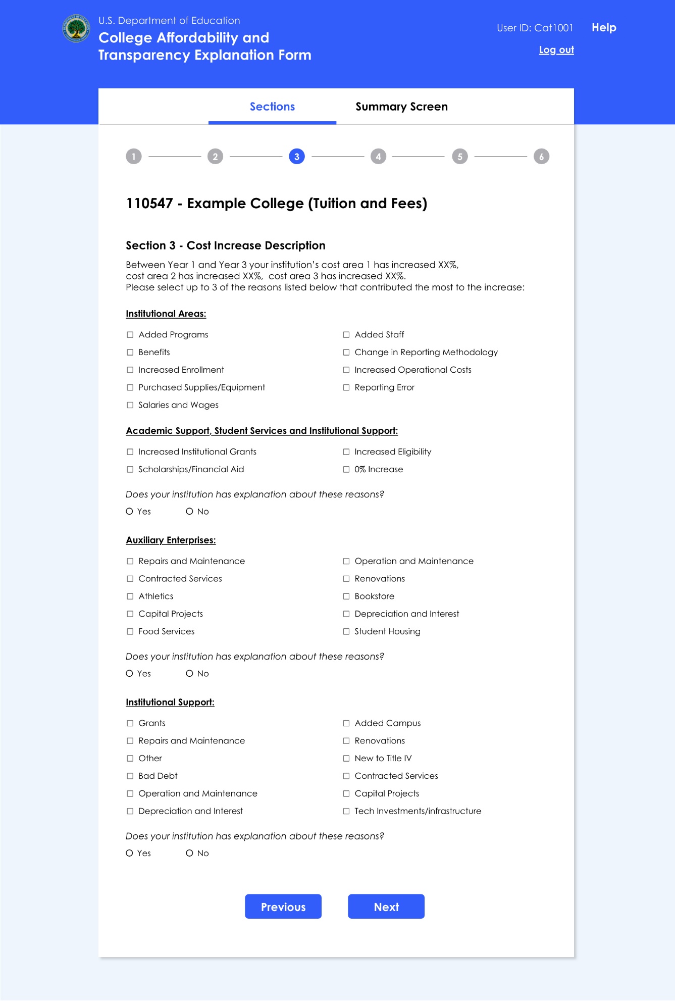 College Affordability and Transparency Explanation Form (CATEF) 2021-2024