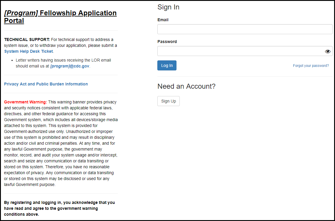This document is broken down by the major pages of the FMS Application. In this document, each page of the FMS Application has sections and some sub-sections. In addition, application instructions, login, and registration pages are included. Instructions and emails in the FMS Application are tailored to each CDC fellowship’s requirements, eligibility criteria, information, and timeline.