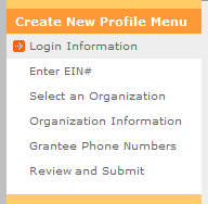 Instructions for Creating an Organizational Profile (for NEW Applicants only)