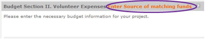 Source of Matching Funds: Please fill in the sources of non-federal share at the beginning of eGrants Sections I and II.