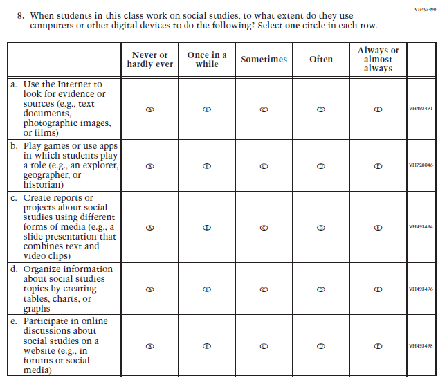 This item is customized by subject and has been revised to remove sub-items for science and expanded to also include sub-items for social studies. |